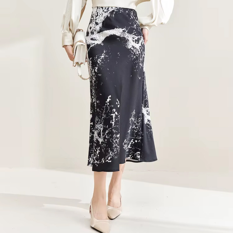 Embrace elegance with the Print High Waist Trumpet Skirt. Designed to exude sophistication and charm, this midi skirt features a unique ink painting print, capturing the beauty of traditional art in a modern silhouette. The high waist and slim fit create a flattering, figure-enhancing shape, while the trumpet or mermaid design gives it a graceful, feminine flair. Perfect for adding a touch of cultural richness to your wardrobe, this skirt is ideal for both office settings and evening outings. Whether you’re attending a meeting or enjoying a dinner date, this skirt offers both style and comfort.