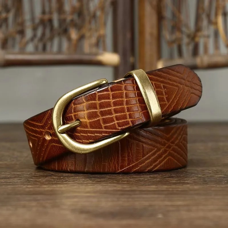 Experience the perfect blend of sophistication and durability with this Real Genuine Leather Belt for Women. Designed with natural cowskin and a solid copper buckle, this belt exudes quality and elegance. The subtle printed pattern adds a touch of unique style, making it a must-have accessory for any wardrobe. Whether you’re dressing up for a casual outing or a formal event, this belt will add a chic finish to your look.