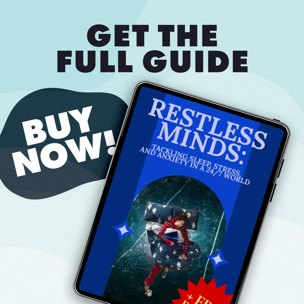 If you’ve been looking for a practical, no-fluff resource to help you regain control over your nights and days, Restless Minds: Tackling Sleep, Stress, and Anxiety in a 24/7 World is your answer. Download your guide today and start building a healthier relationship with sleep, stress, and your own well-being.