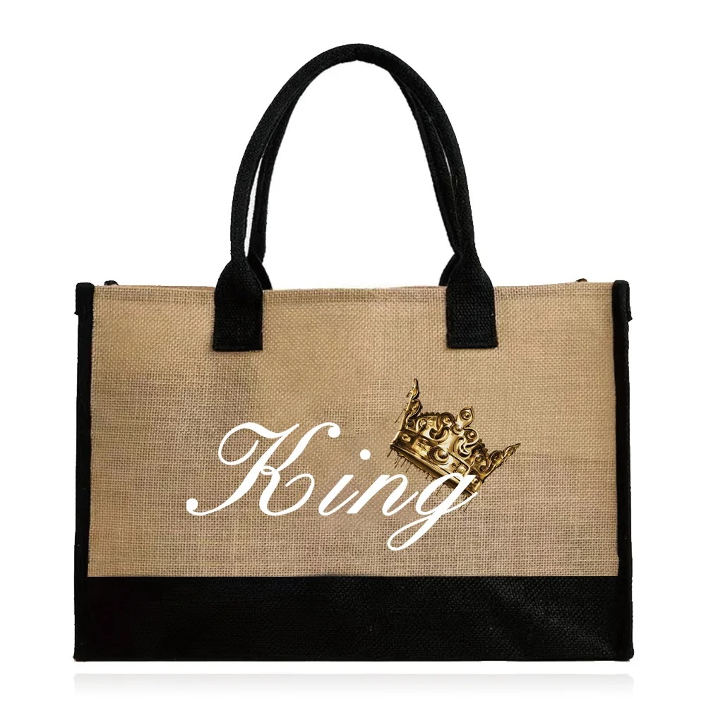 Say goodbye to plastic waste and hello to sustainable style with this eco-friendly reusable shopping bag. Made with durable jute and canvas, this large-capacity bag is designed to make your grocery trips, beach outings, and daily errands more stylish and organized. Featuring an elegant King Print design, it’s the perfect combination of practicality and fashion, ideal for women who value both utility and sustainability.