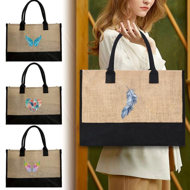 Make a statement with this Reusable Jute Tote Bag, featuring an elegant feather print and crafted for functionality and style. Whether you’re heading to the beach, shopping for groceries, or enjoying a casual outing, this large-capacity tote is your perfect companion. Designed with a blend of cotton, linen, and canvas, it combines durability with a natural, eco-friendly aesthetic. With its spacious design and versatile appeal, this tote bag is a must-have for any wardrobe.