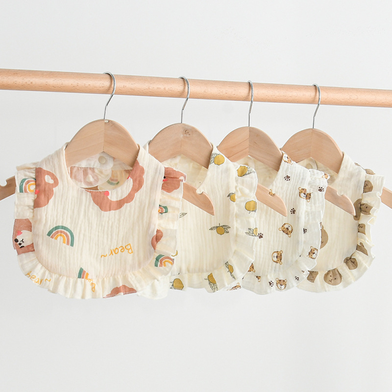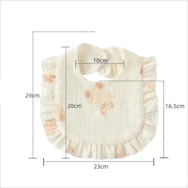 Unlike standard bibs, our cotton gauze bibs offer a blend of softness, breathability, and charming design. The unique petal shape adds a decorative touch while covering a wide area to keep clothes clean. Plus, with no high-concern chemicals, you can feel confident knowing your baby is safe.