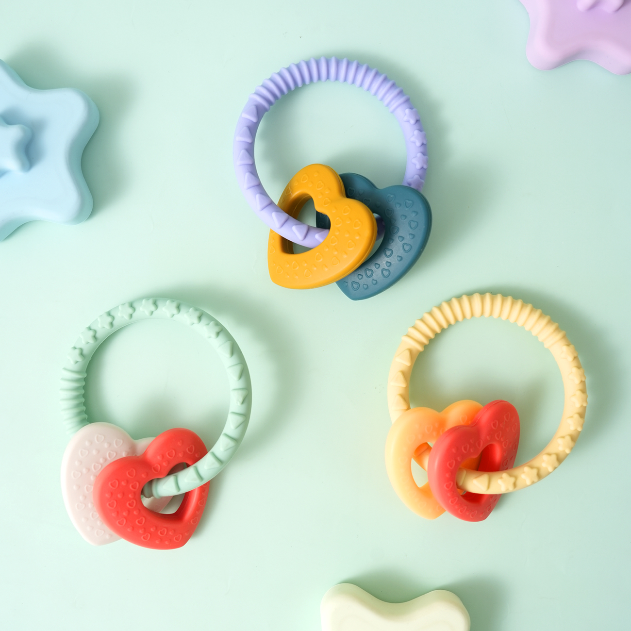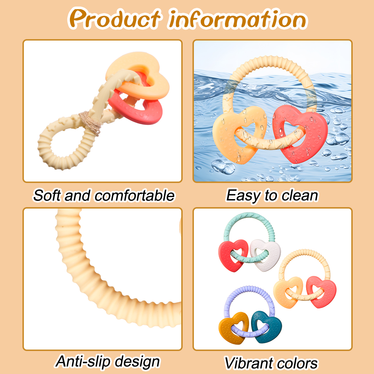Help your little one through the teething phase with a toy designed for comfort, safety, and fun. This Soft Silicone Baby Teething Ring with adorable cartoon heart details is the perfect companion for babies experiencing sore gums. Made from food-grade silicone and shaped for easy grip, this colorful teether offers a playful and safe way to ease discomfort while encouraging sensory development.