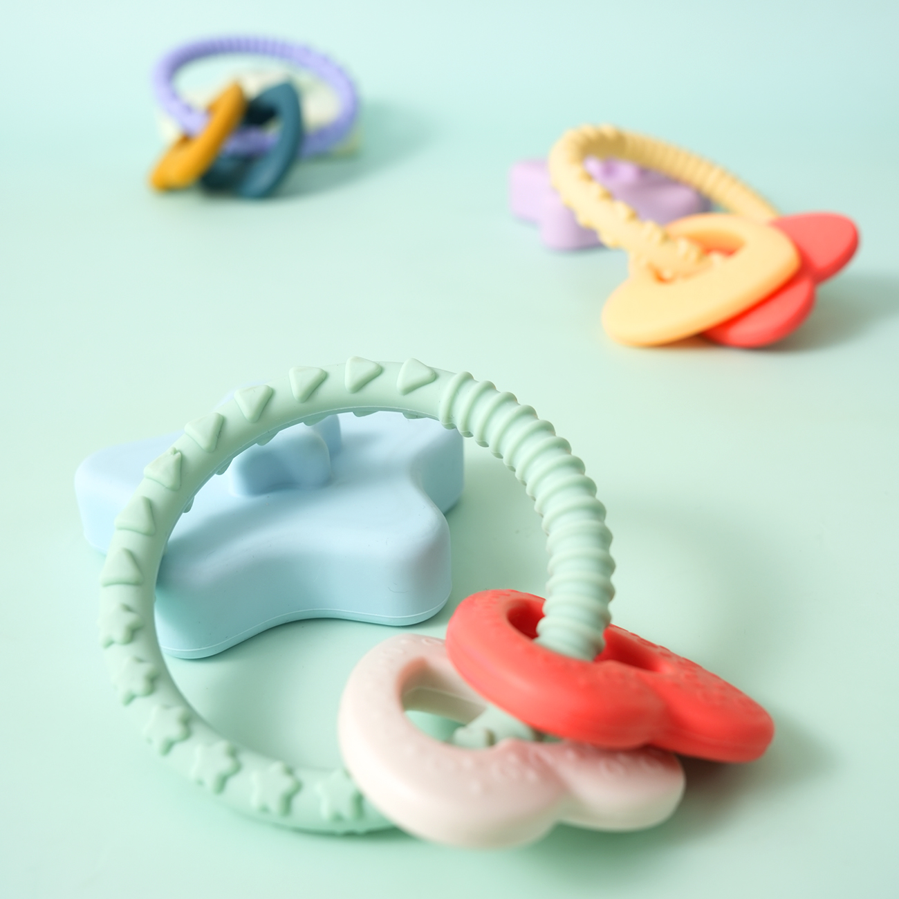 Use this silicone teething ring anytime your baby needs soothing – at home, during stroller rides, in the car seat, or even during tummy time. Keep one in the nursery and one in your diaper bag for on-the-go relief whenever those tiny teeth start to break through.