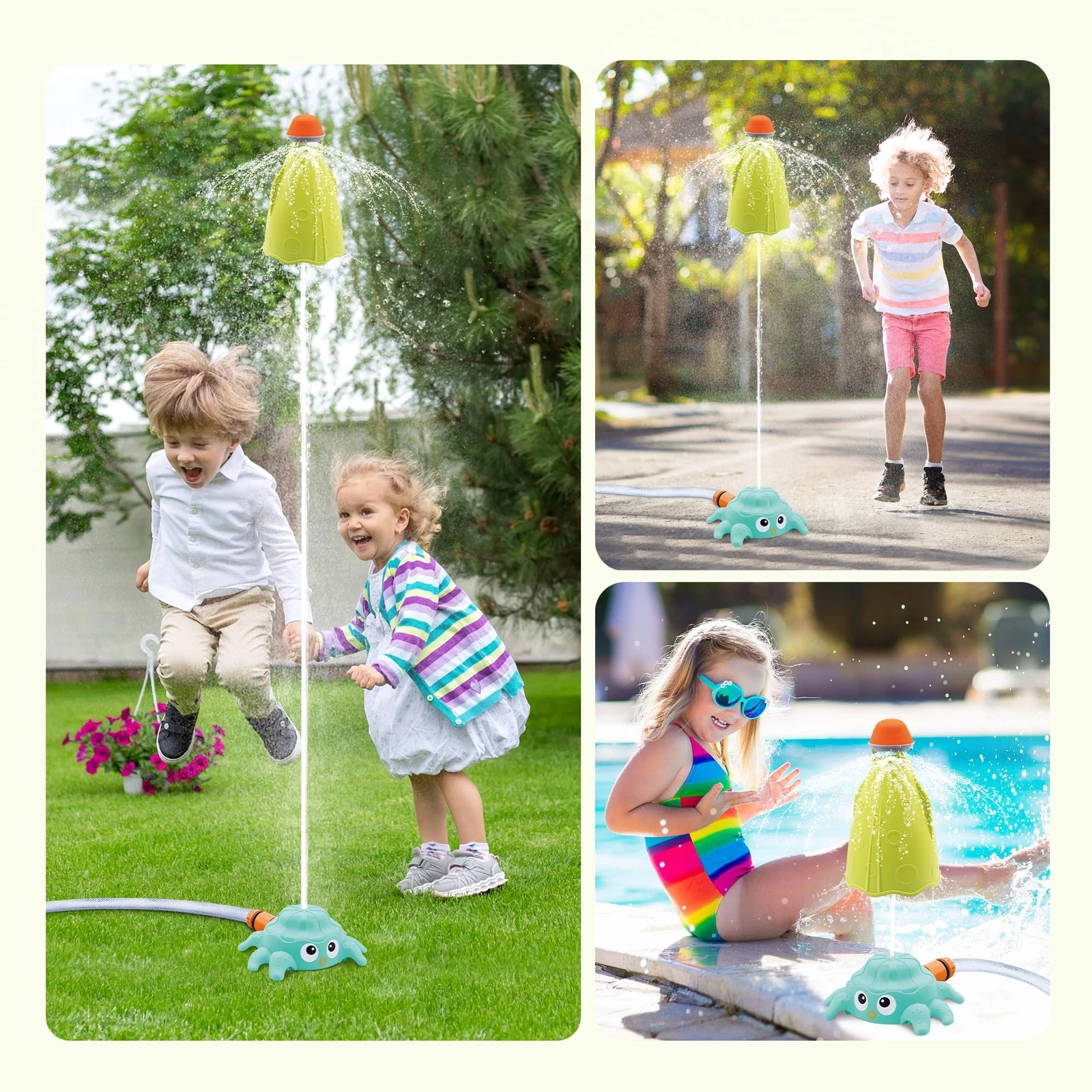 Get ready for giggles, excitement, and endless outdoor fun with the Spinning Rocket Octopus Sprinkler Toy for Kids! Designed to turn your backyard into a water-filled wonderland, this adorable and safe sprinkler toy brings joy to hot summer days. Easy to assemble and even easier to enjoy, this rocket-shaped water sprinkler shoots spinning sprays of water in all directions, keeping toddlers and young children cool and entertained for hours. Simply connect it to a standard garden hose, turn on the water, and watch the fun take off!