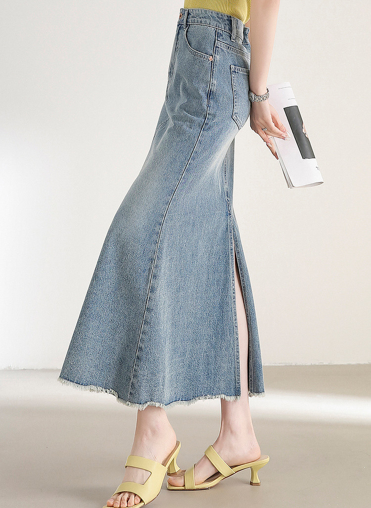 Whether you’re heading to brunch with friends, a weekend getaway, or a relaxed day at work, this split trumpet denim skirt is your go-to option. The classic design and comfortable fit make it easy to style for casual or semi-formal events. Pair it with your favorite tops and accessories to create a look that’s uniquely yours.