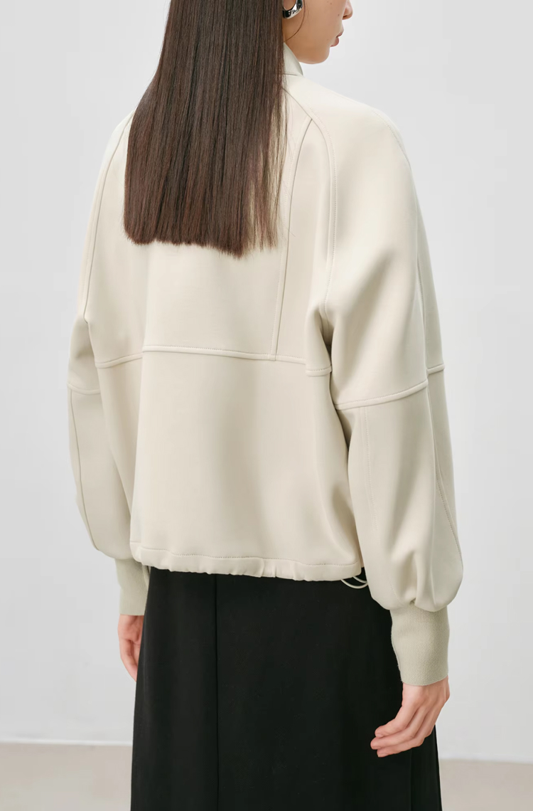 This cropped zip-up sweatshirt jacket is more than just a stylish outerwear piece—it’s a wardrobe essential for the cooler months. Its minimalist design and stand collar make it versatile enough for casual outings or office settings. The cropped length pairs beautifully with high-waisted jeans, trousers, or skirts, giving you an effortlessly put-together look. The fabric blend ensures a soft, breathable feel with just the right amount of stretch for all-day comfort.