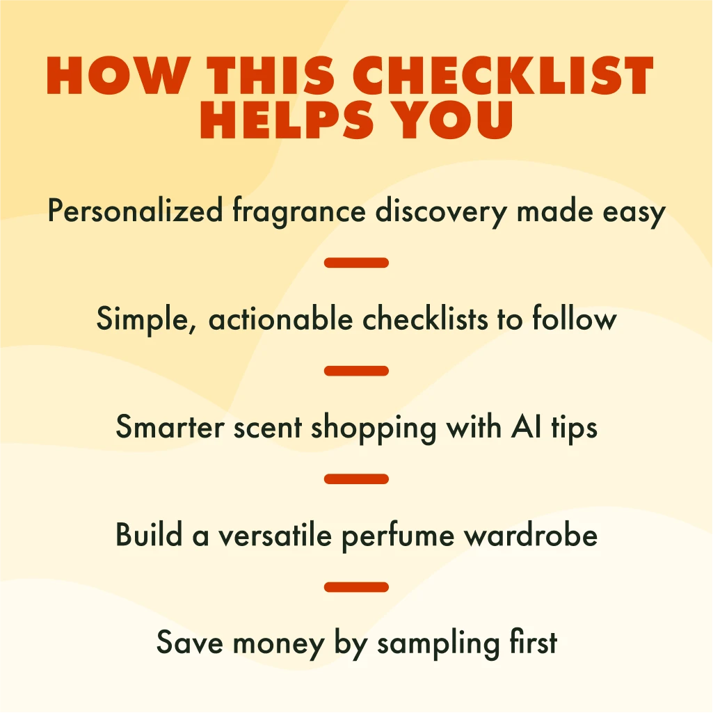 Unlike generic fragrance guides, this checklist blends the art of scent discovery with the power of AI. It’s not about overwhelming you with technical jargon—it’s about giving you clear, fun, and practical steps you can take right now. By combining expert fragrance tips with AI-Curated Scent Recommendations, this resource helps you explore perfumes in a way that’s modern, personalized, and completely unique to you.