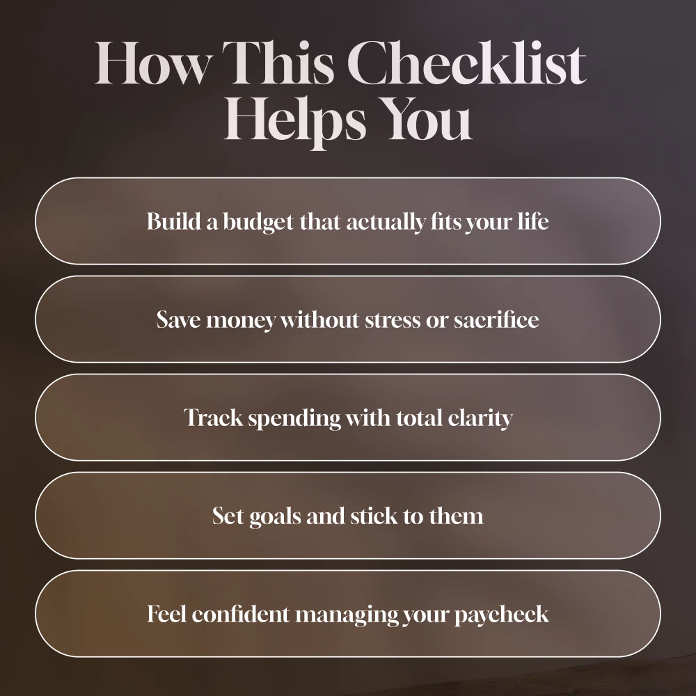 - A 20-step printable checklist that guides you from money chaos to paycheck clarity