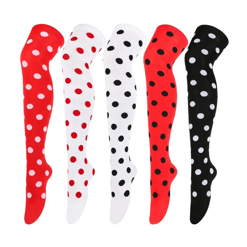 Ready to add a little extra fun to your wardrobe? These thigh-high polka dot stockings are the perfect way to do it. With their playful design, high-quality materials, and comfortable fit, these socks are bound to become a favorite. Don’t miss out on this perfect accessory—order your pair today and step into a world of comfort and style!