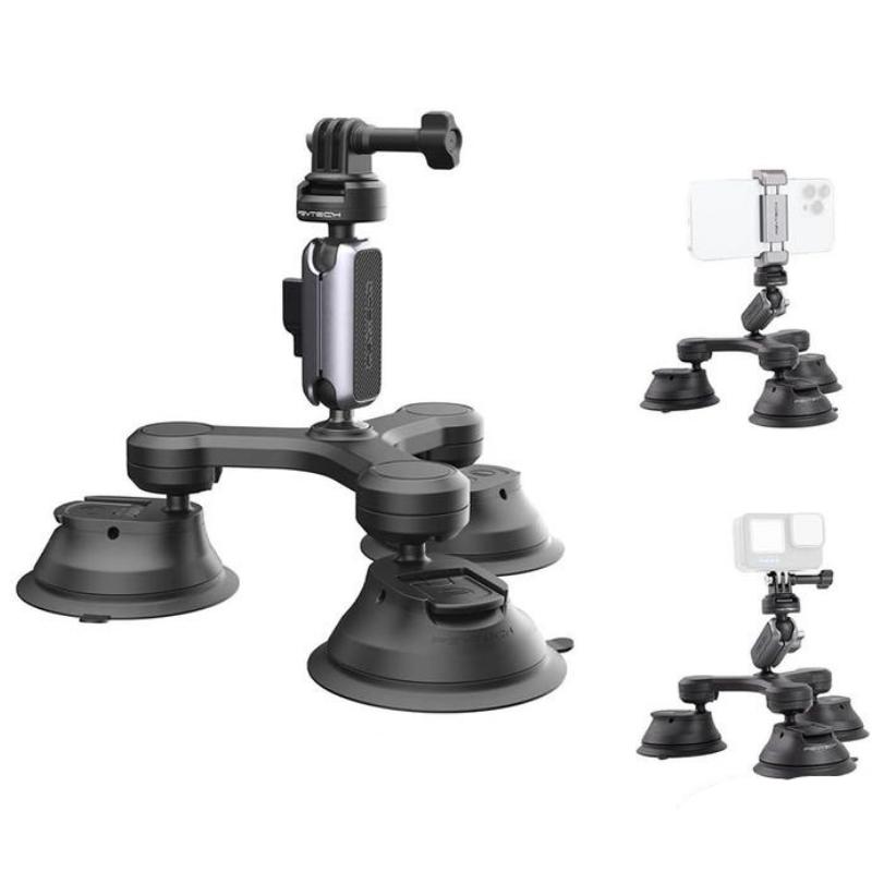Designed for convenience and performance, this mount stands out with its triple suction cup base, ensuring unparalleled stability. The adjustable 360° rotation delivers the flexibility to capture every angle with ease. Its quick-release mechanism saves you time, while the dual-lock system keeps your gear secure even in the most demanding conditions. Compact yet powerful, this mount is perfect for extended sports filming, road trips, or creative indoor shoots.