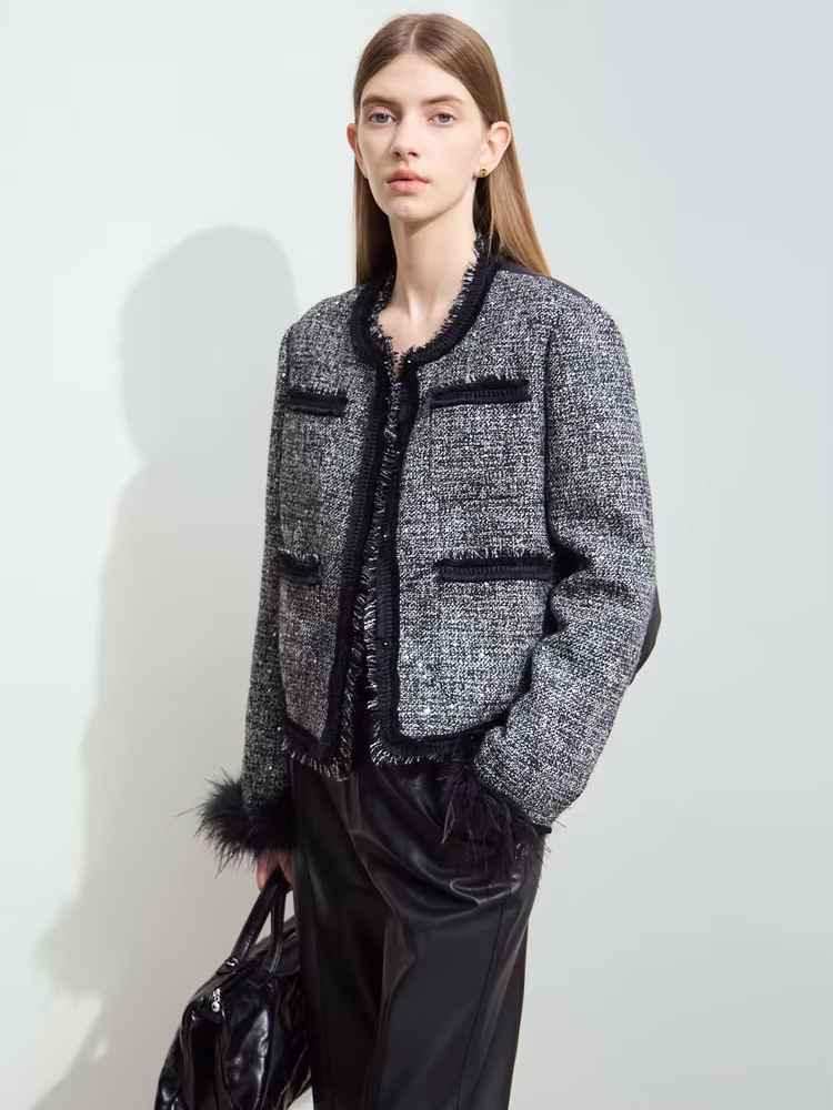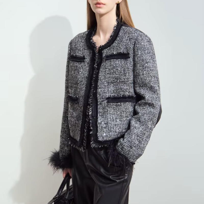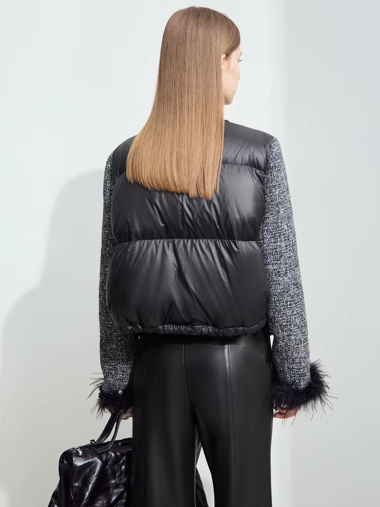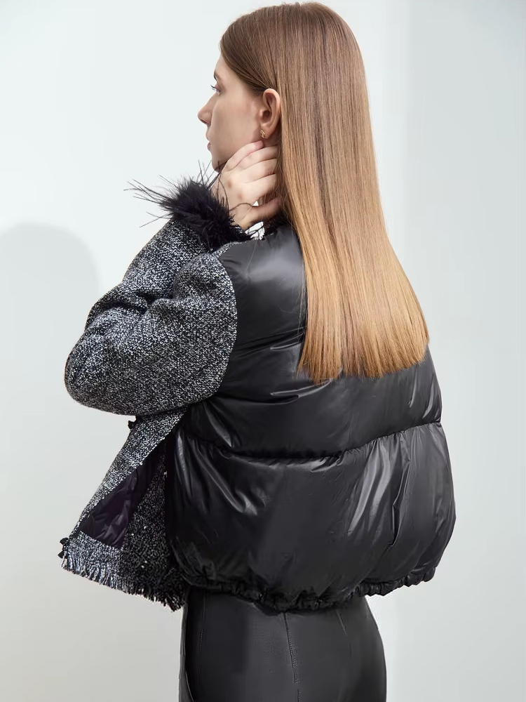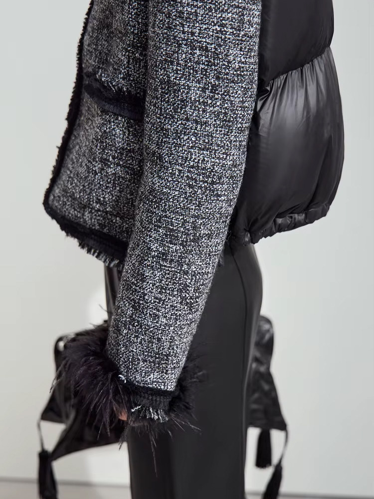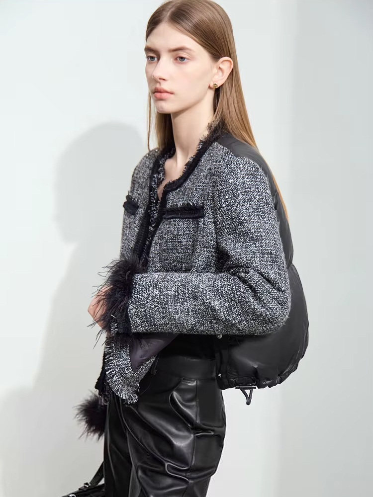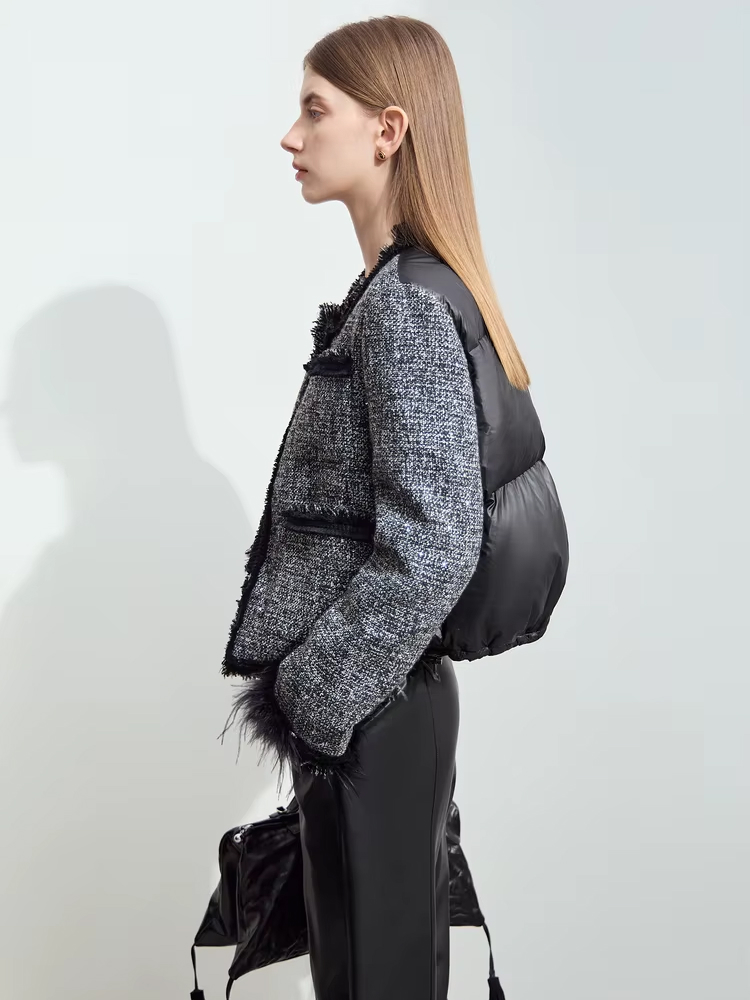 Stay Warm and Stylish with This Elegant Tweed Down Coat