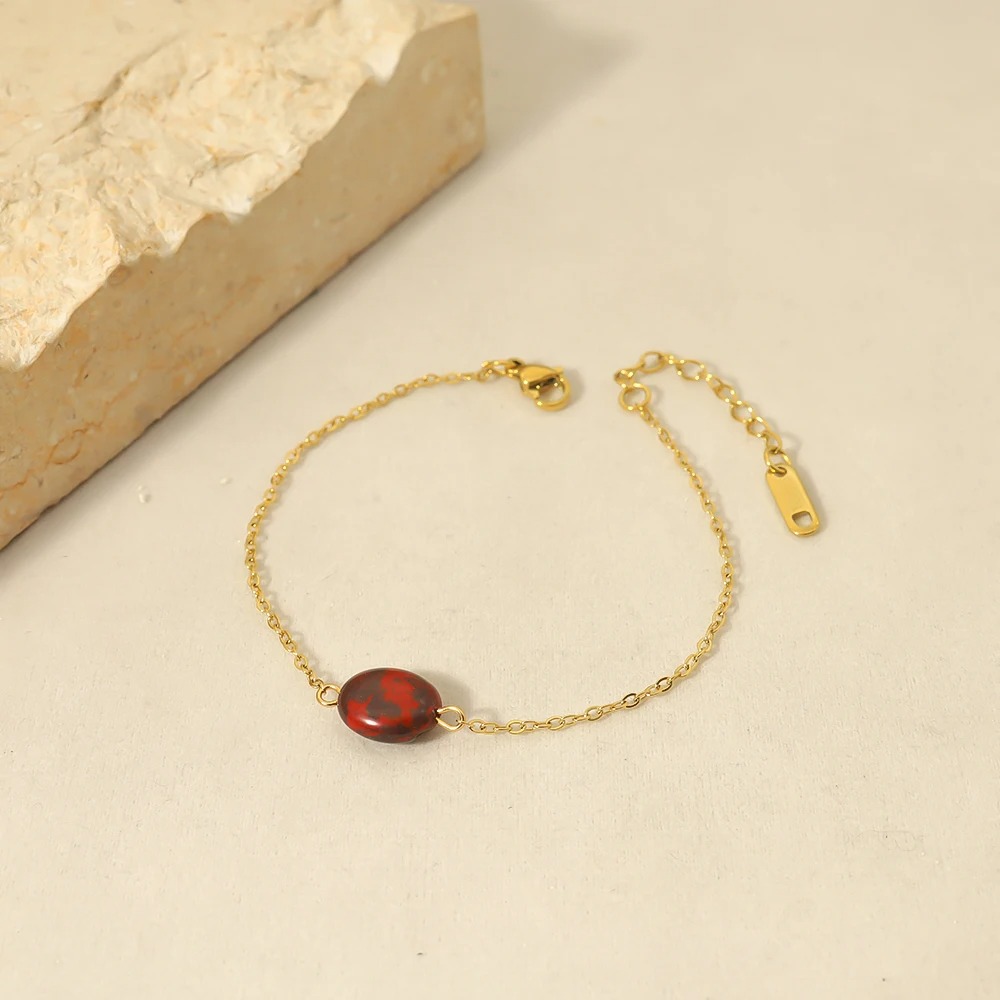 This bracelet stands out with its blend of vibrant natural stone and polished stainless steel. The link chain design adds a contemporary edge, while the red stone creates a touch of vintage elegance. It’s more than just jewelry—it’s a statement of timeless beauty and modern craftsmanship.