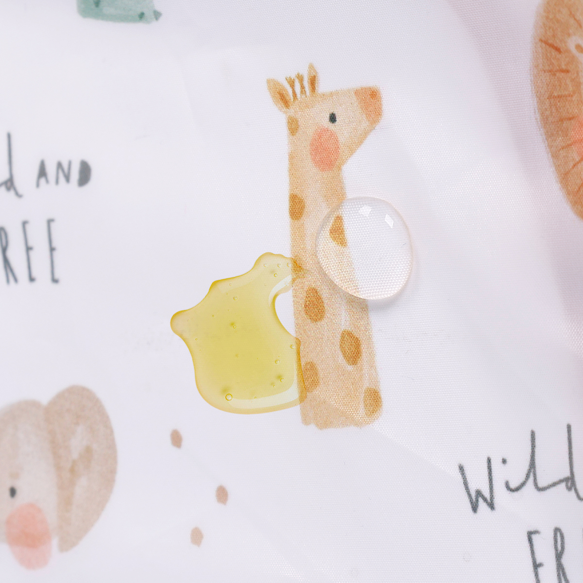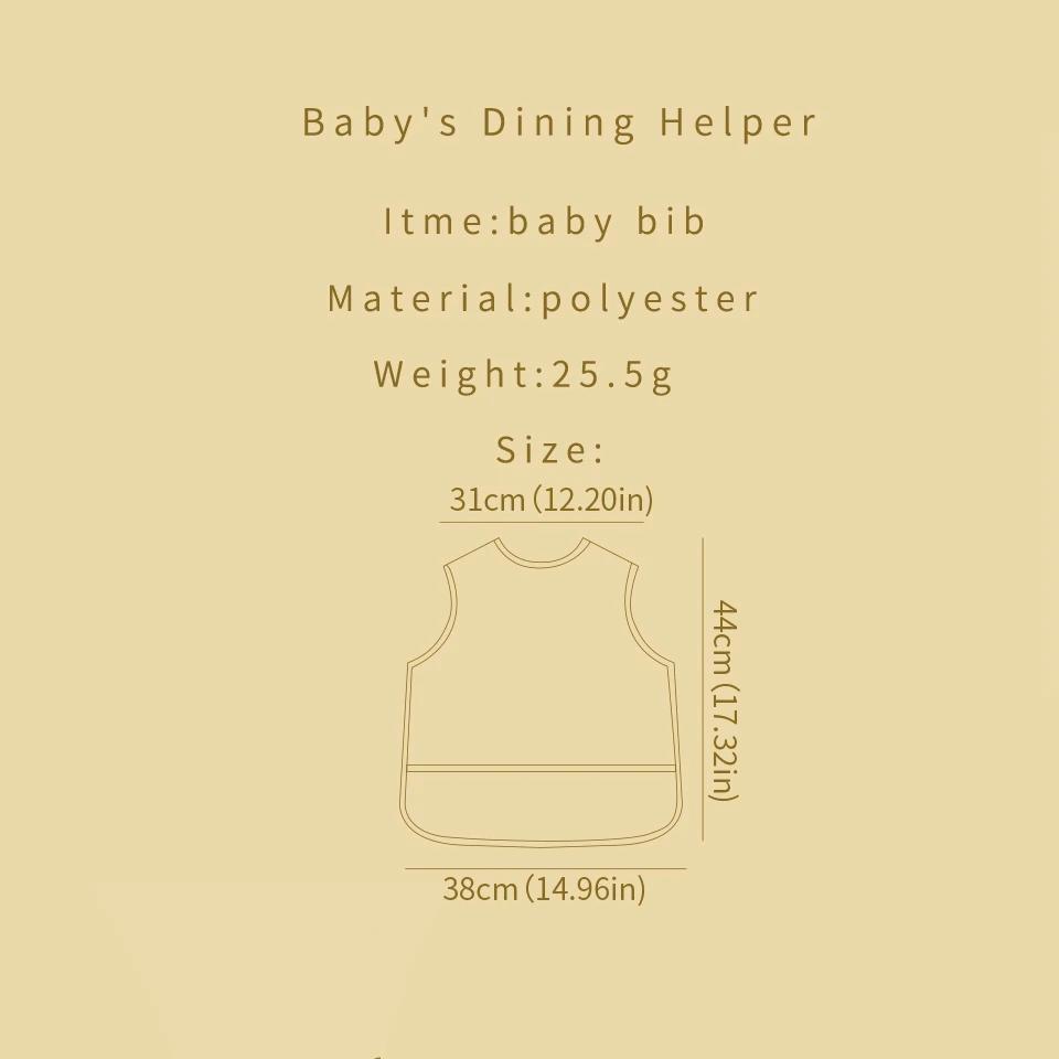 This feeding bib is made from high-quality, lightweight polyester with an EVA waterproof coating that offers reliable protection against spills, stains, and crumbs. Its smooth, dirt-proof surface makes cleaning up as simple as a quick wipe. The soft, flexible material ensures your baby can move and explore without feeling restricted, while the cute cartoon patterns keep them entertained and photo-ready at the table.