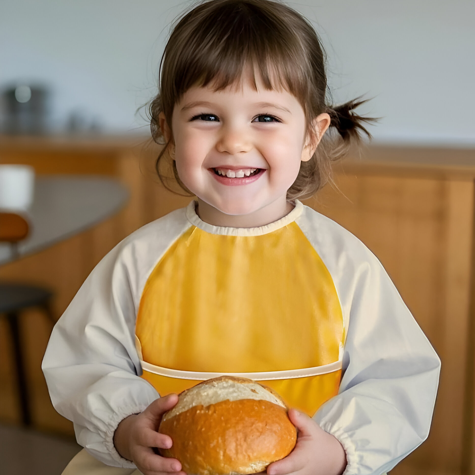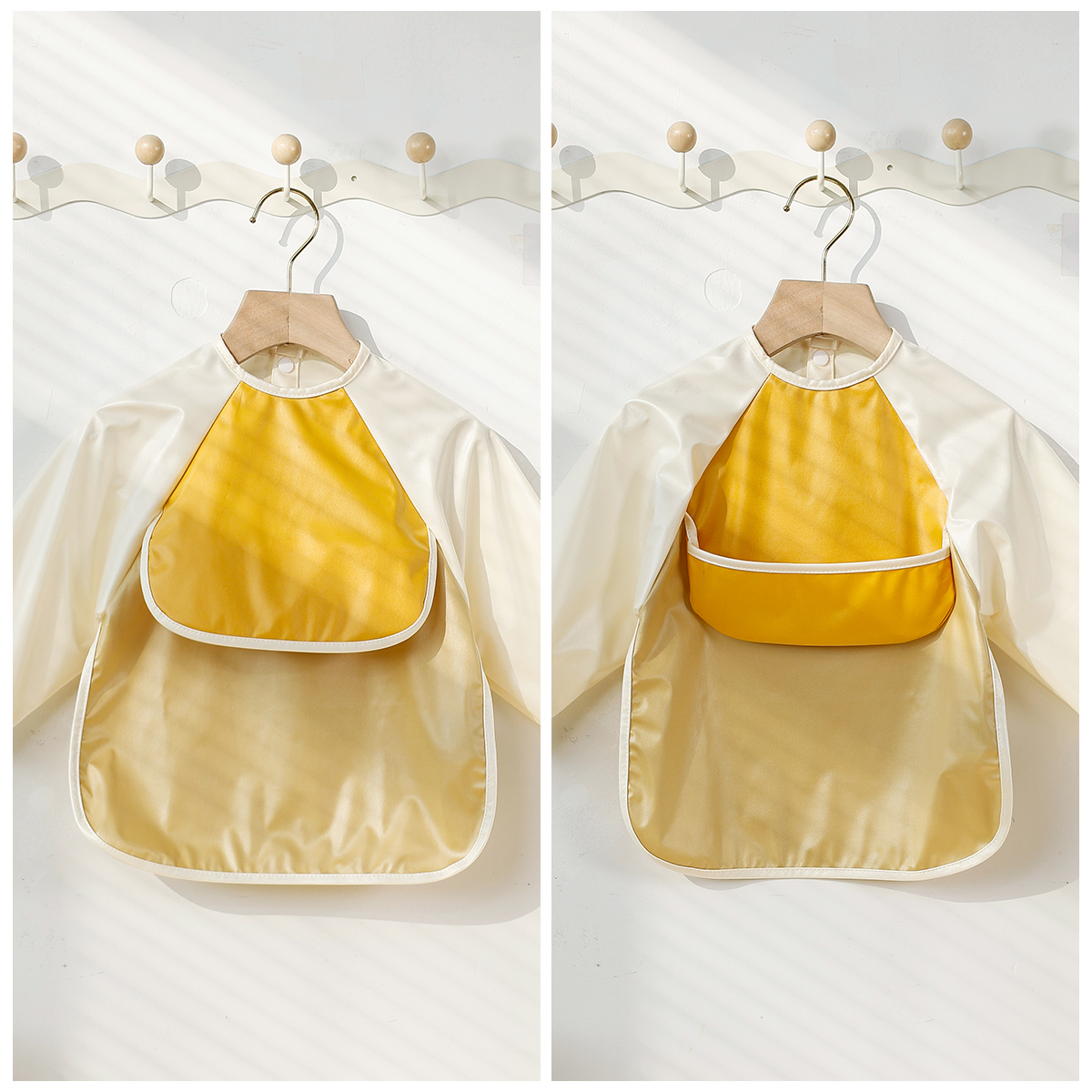 Unlike ordinary bibs, this smock provides full upper-body protection with its long sleeves and high-quality waterproof fabric. It’s designed to make parenting easier, letting you focus on your child’s creativity or nutrition instead of constant clean-up. The minimalist, solid color style is modern and practical—no flashy prints, just functional fashion that works.