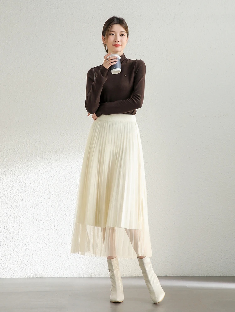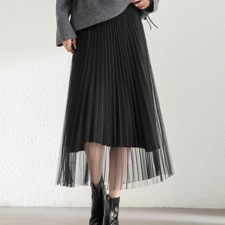 Step into effortless sophistication with our Winter High Waist A-Line Pleated Long Skirt. Perfect for chilly days, this skirt blends comfort and elegance seamlessly. Designed with an A-line silhouette, it flatters every figure, while its unique patchwork mesh detailing adds a touch of contemporary charm. Whether you’re heading to a casual outing or a cozy dinner date, this skirt is your go-to piece for the season.
