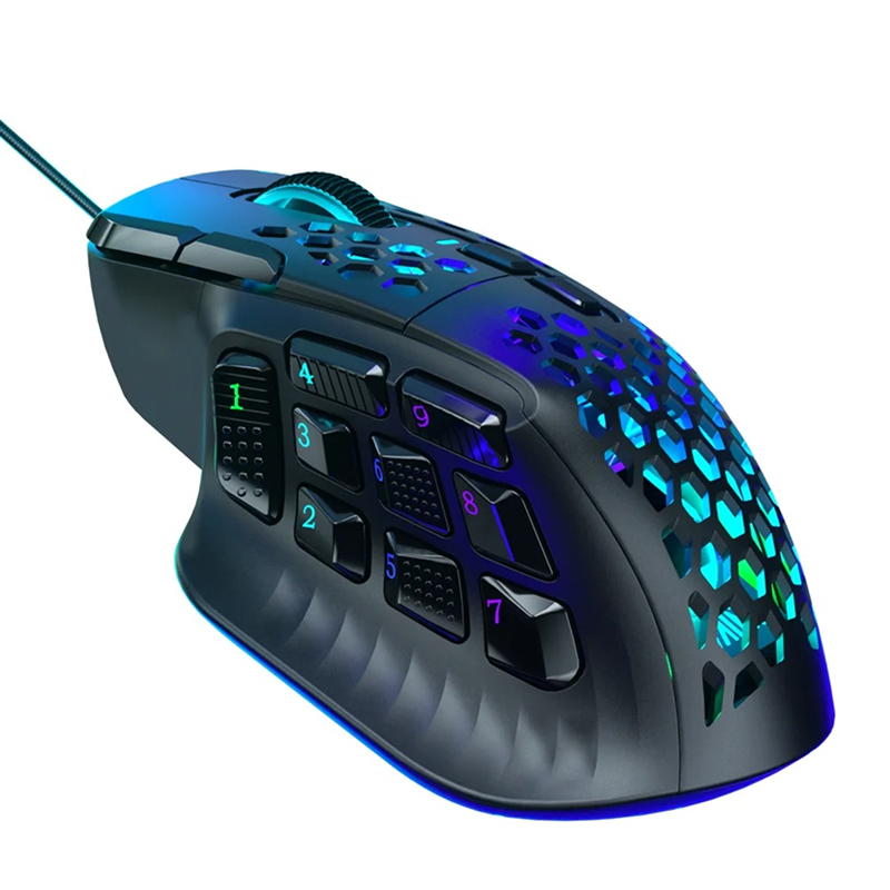 Step up your gaming experience with this high-performance wired gaming mouse designed for professional esports players and serious gamers alike. Featuring a stunning 22800 DPI sensor, customizable RGB backlighting, and 16 programmable buttons, this mouse provides the precision and flexibility you need for both intense MMO gaming sessions and high-speed competitive matches. Its ergonomic design ensures comfort during long play sessions, while the honeycomb structure enhances airflow and reduces weight, giving you a responsive and smooth gaming experience.