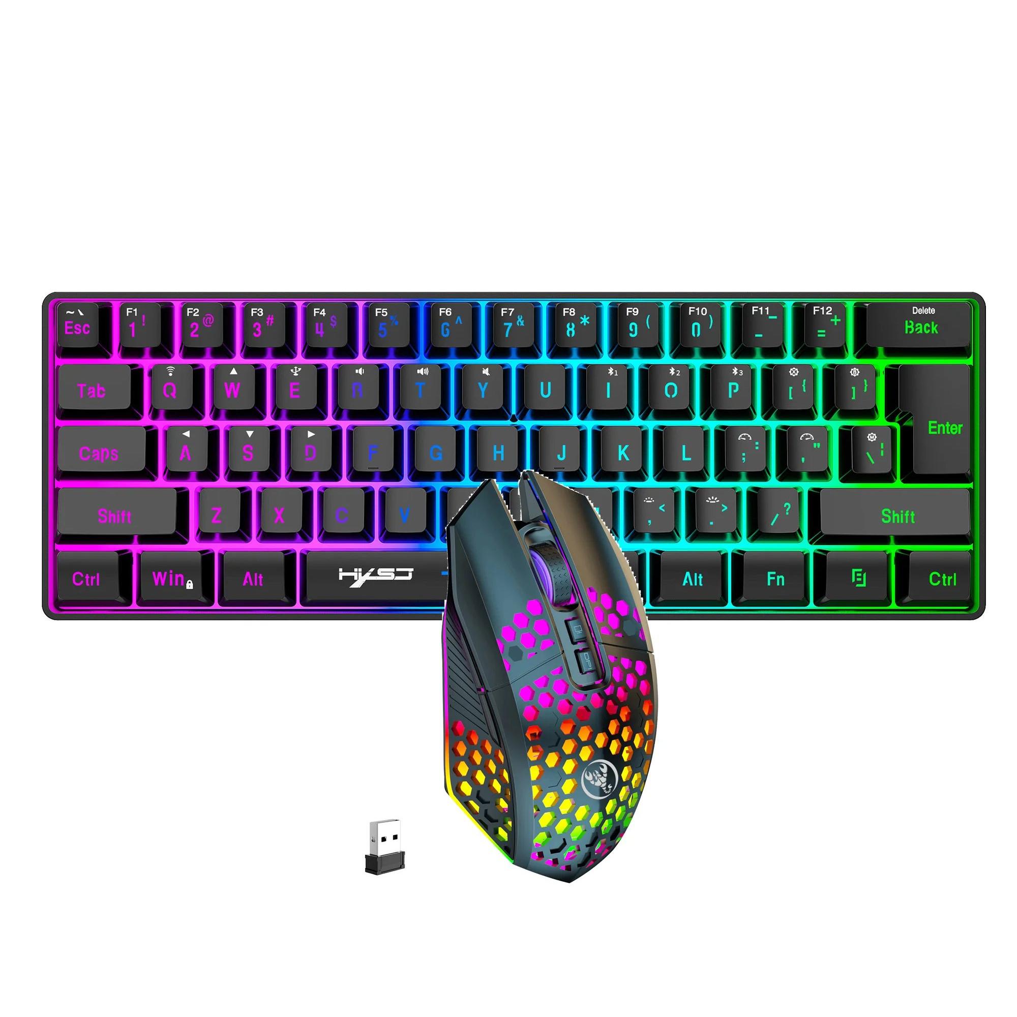 Experience a new level of gaming precision and comfort with the Wireless Gaming Keyboard and Mouse Combo. This compact and stylish set combines cutting-edge technology with ergonomic design, ensuring a seamless gaming experience for casual and professional gamers alike. With vibrant RGB backlighting, multiple connection modes, and customizable features, this keyboard and mouse combo is built to elevate your performance and style.