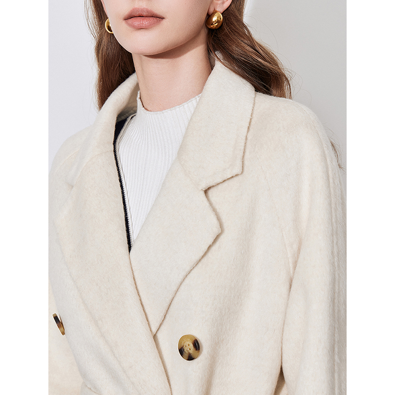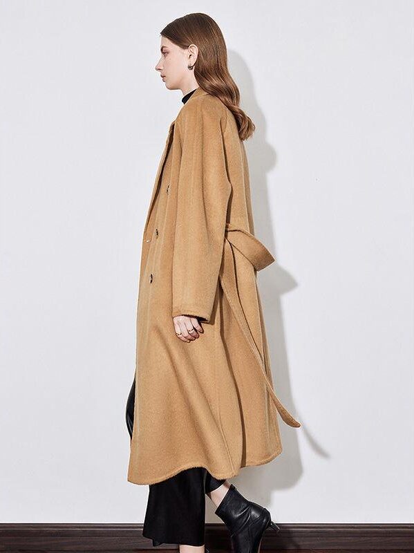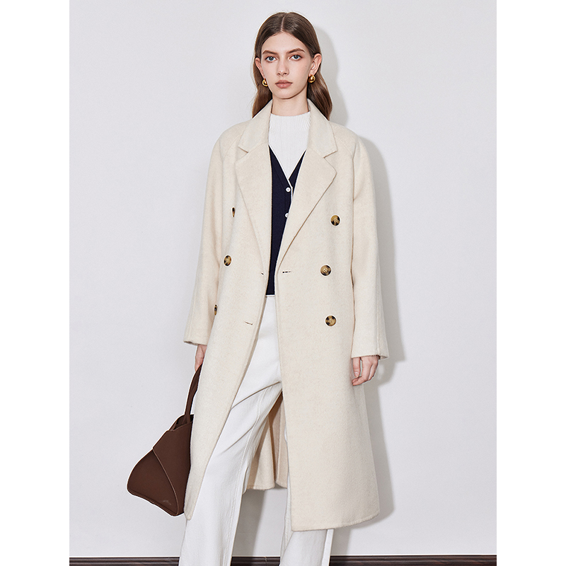 This women’s wool coat is not just about looking good – it’s designed to perform. The long, elegant length provides warmth during colder months, while the high-quality wool fabric ensures lasting durability and comfort. Perfect for layering over office attire or pairing with casual outfits, this coat is a go-to for every occasion. The silk notched shawl collar adds a unique touch of luxury, while the double-breasted closure creates a polished, timeless look. Whether you’re heading to the office, out for dinner, or running errands, you’ll feel confident and stylish in this coat.