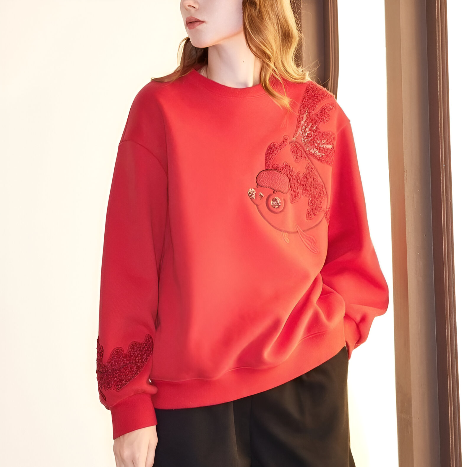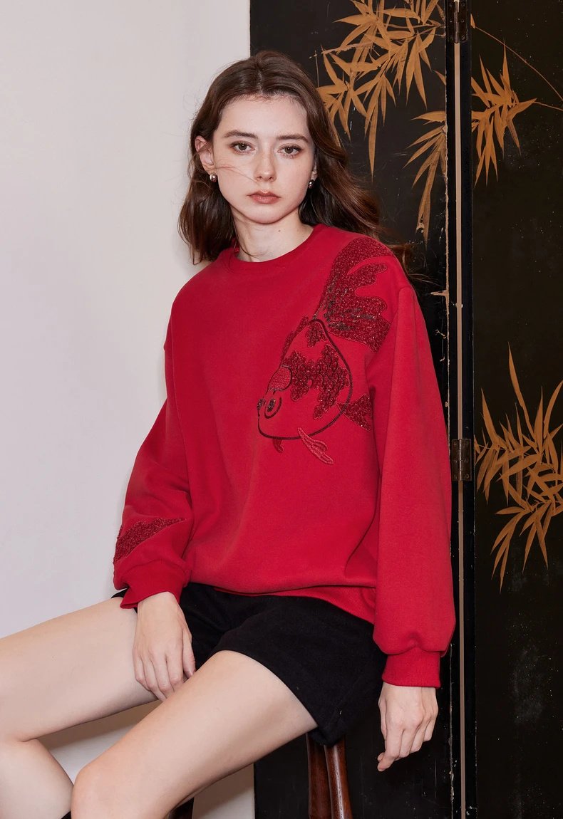 Unlike ordinary winter wear, this sweatshirt combines premium materials with thoughtful design. The koi embroidery not only adds a touch of artistic flair but also symbolizes strength and perseverance—perfect for starting your day with confidence. Its thick cotton fabric and loose fit ensure both warmth and mobility, making it ideal for daily wear or special occasions during the colder months.