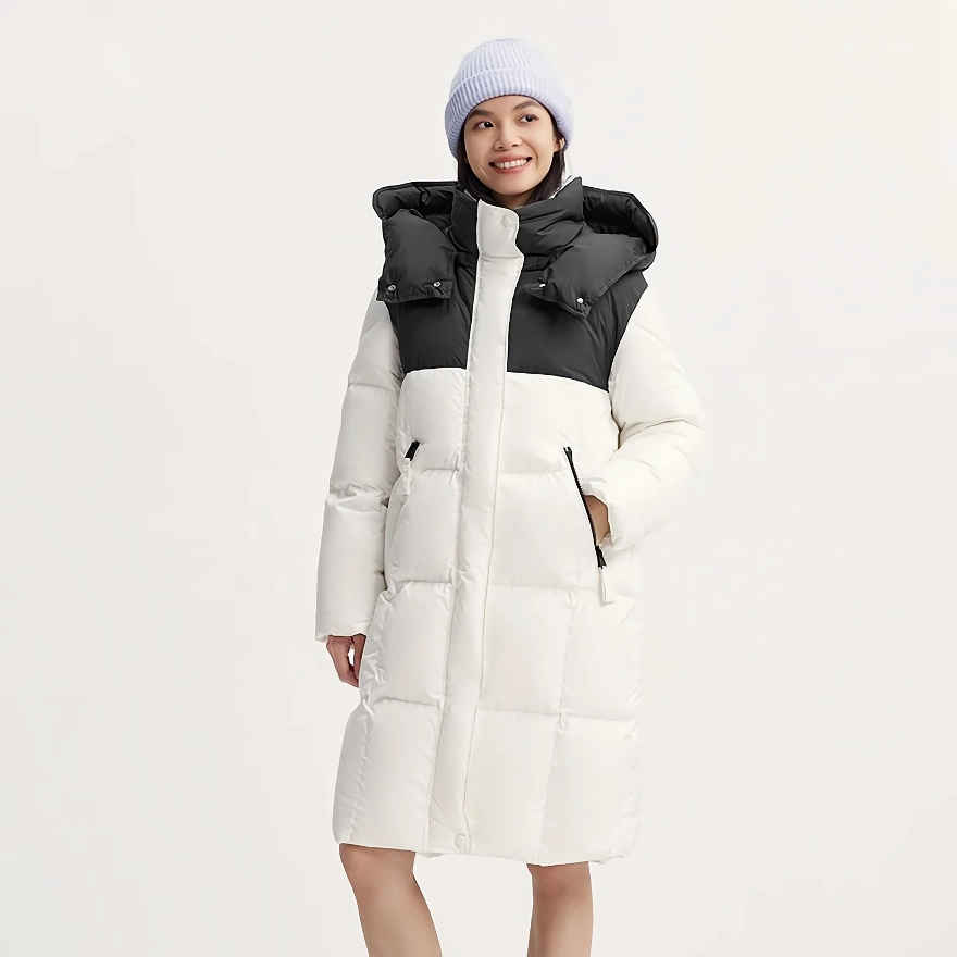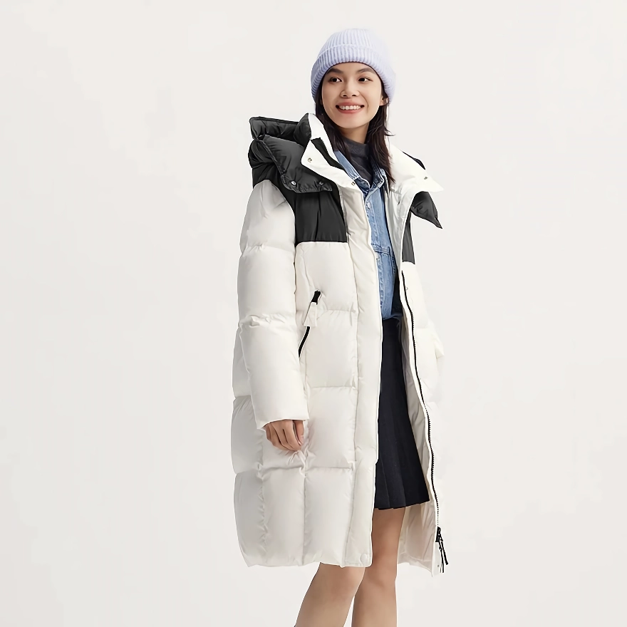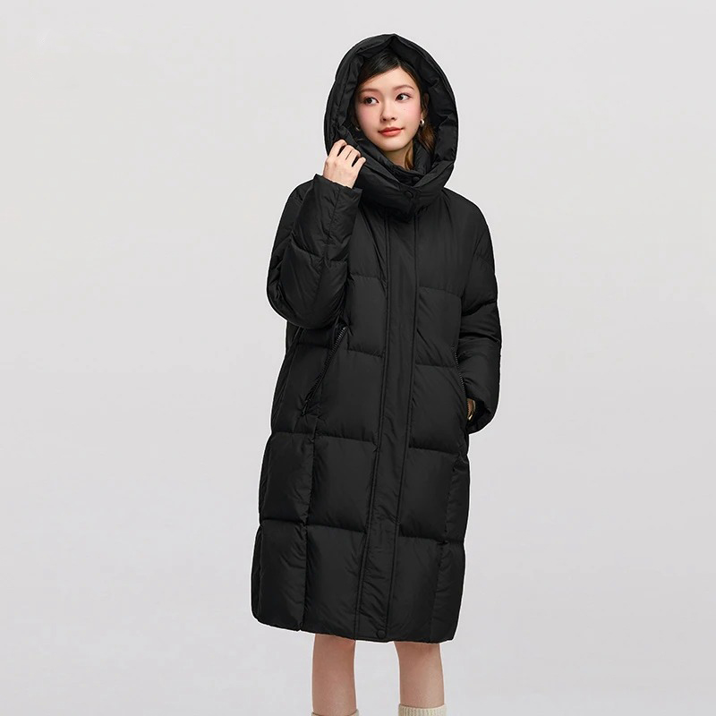 Upgrade your winter wardrobe with the ultimate combination of comfort, style, and functionality. This long-length down jacket for women is designed to keep you cozy while showcasing effortless elegance. Its sleek, solid color design is both versatile and timeless, making it the perfect addition to any cold-weather ensemble. With a water-repellent finish and a detachable hood, this jacket is as practical as it is chic.