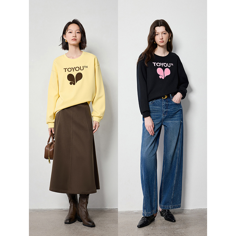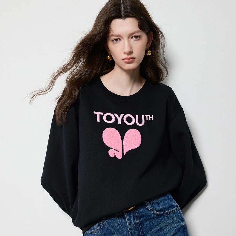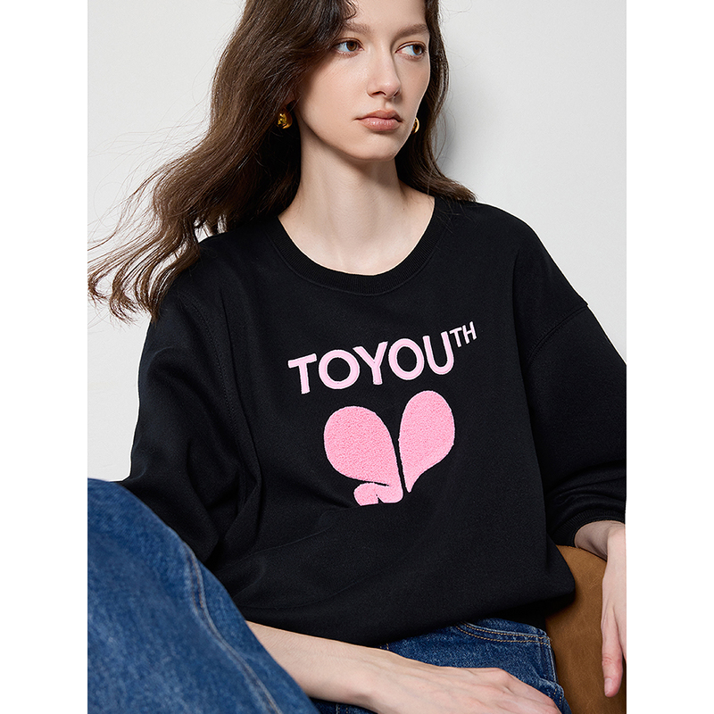 The off-shoulder design adds a subtle touch of allure, setting this top apart from everyday basics. The love pattern print brings a youthful, charming vibe, while the round neck keeps it classic and easy to style. Made from a cotton-polyester blend, the sweatshirt offers breathability, softness, and durability. Its drop sleeves enhance the casual aesthetic, making it a go-to piece for layering or standalone wear.