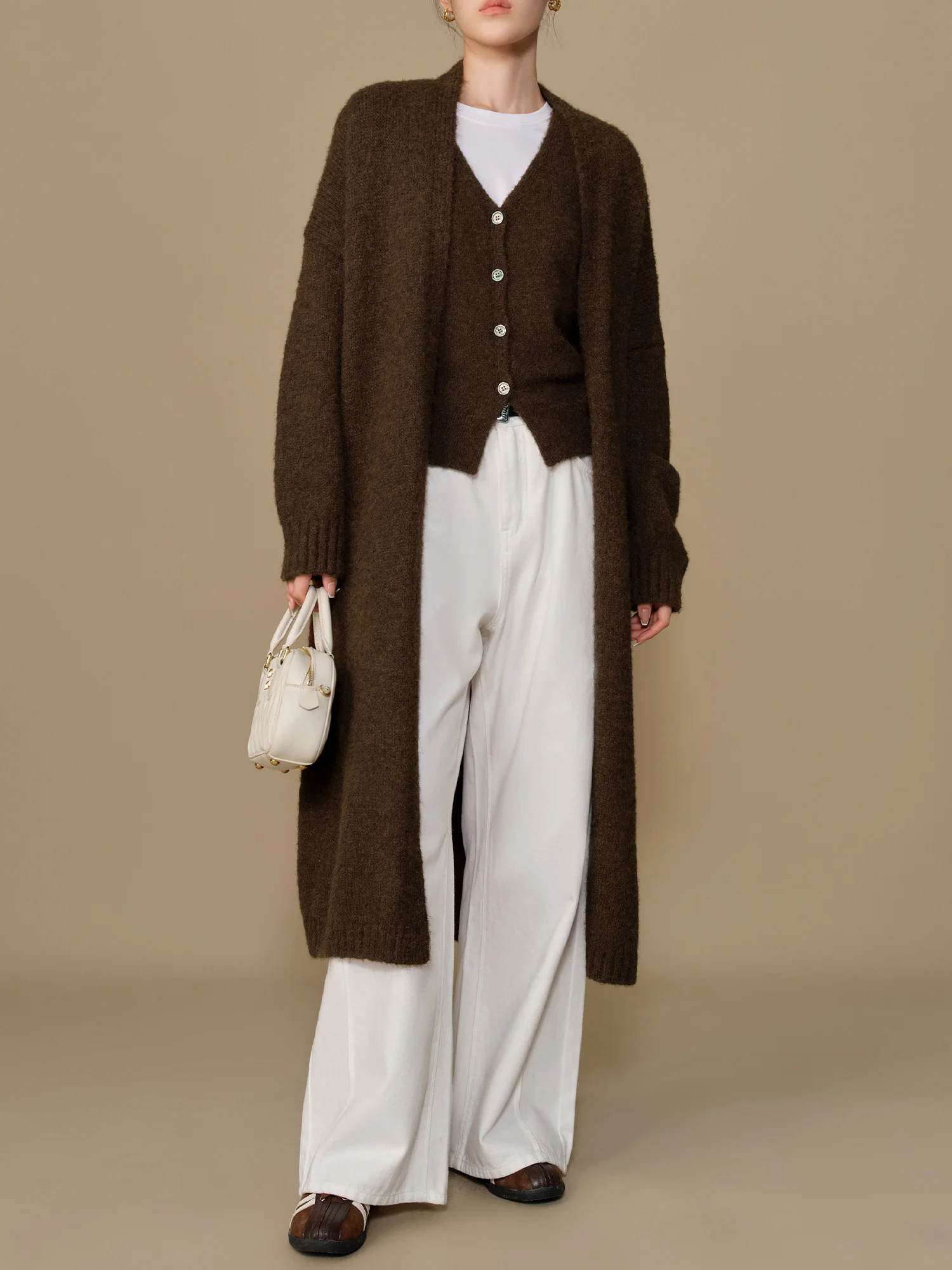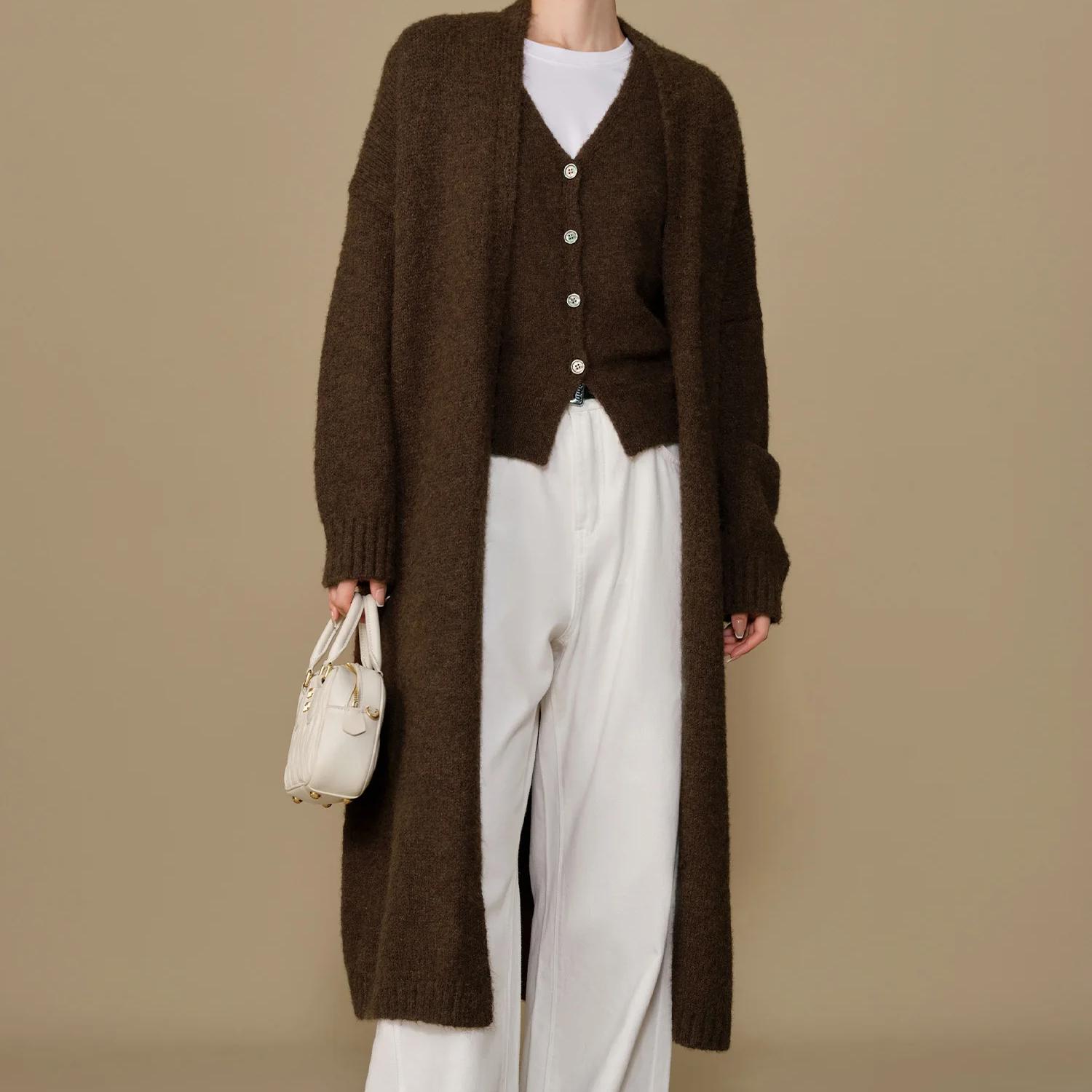 The sleeveless vest and long coat create a flattering, loose-fitting silhouette that ensures comfort and ease of movement. With a sleek, buttoned design and an on-trend O-neck collar, this two-piece set is made to complement any casual or semi-formal look. Featuring a slightly thick knit, it provides warmth throughout the cooler seasons while offering a modern, minimalist style that pairs seamlessly with both jeans and dresses.