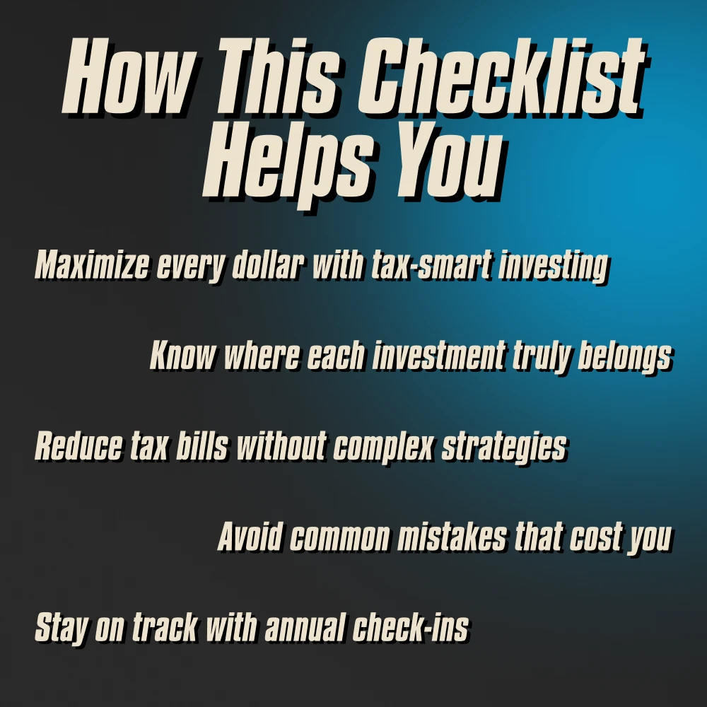 Tax planning doesn’t have to be overwhelming. This checklist breaks down complex tax rules and investing principles into bite-sized, actionable steps that fit neatly into your financial planning routine. If you want to grow wealth while minimizing tax drag, this guide is a must-have.